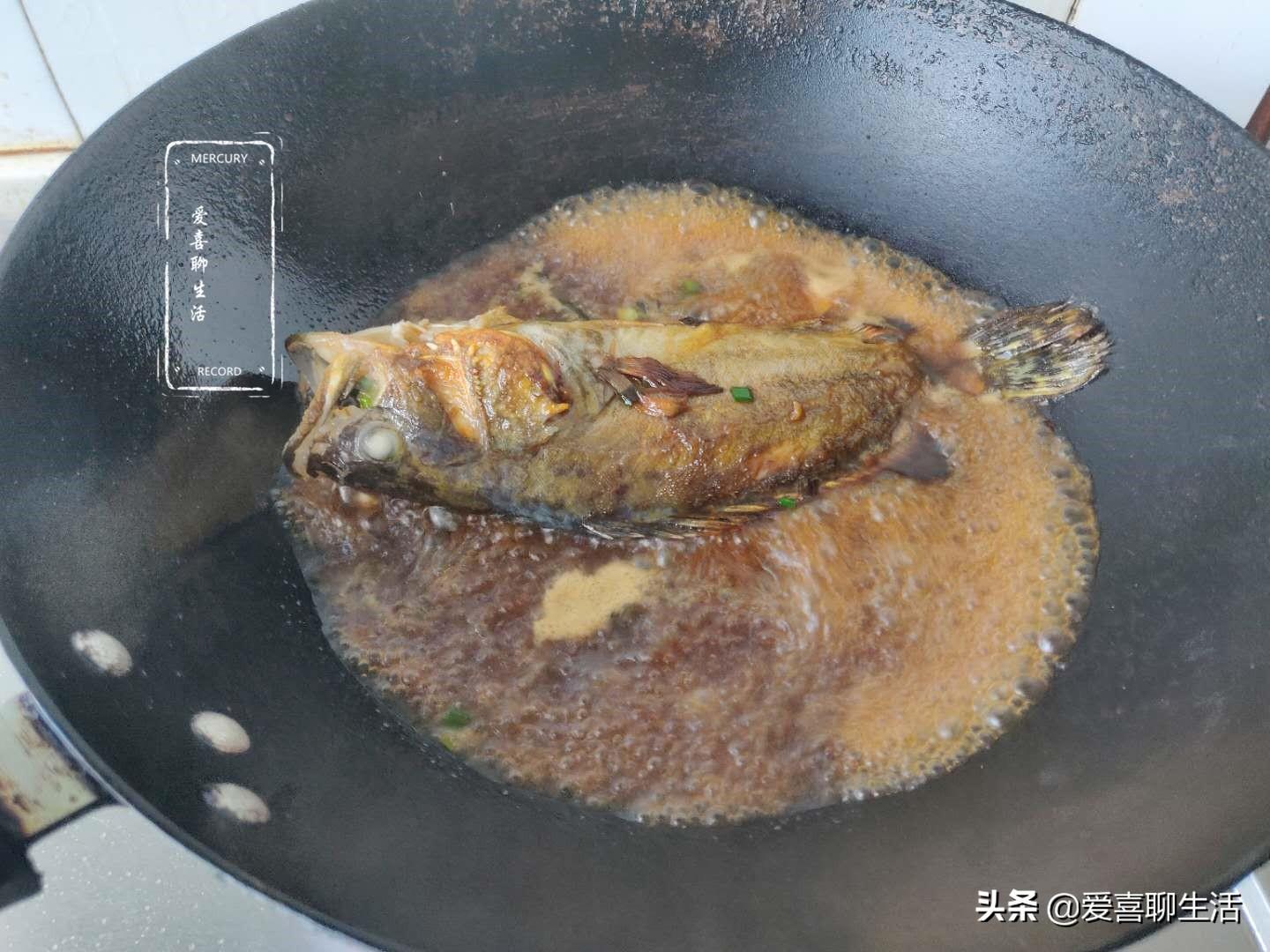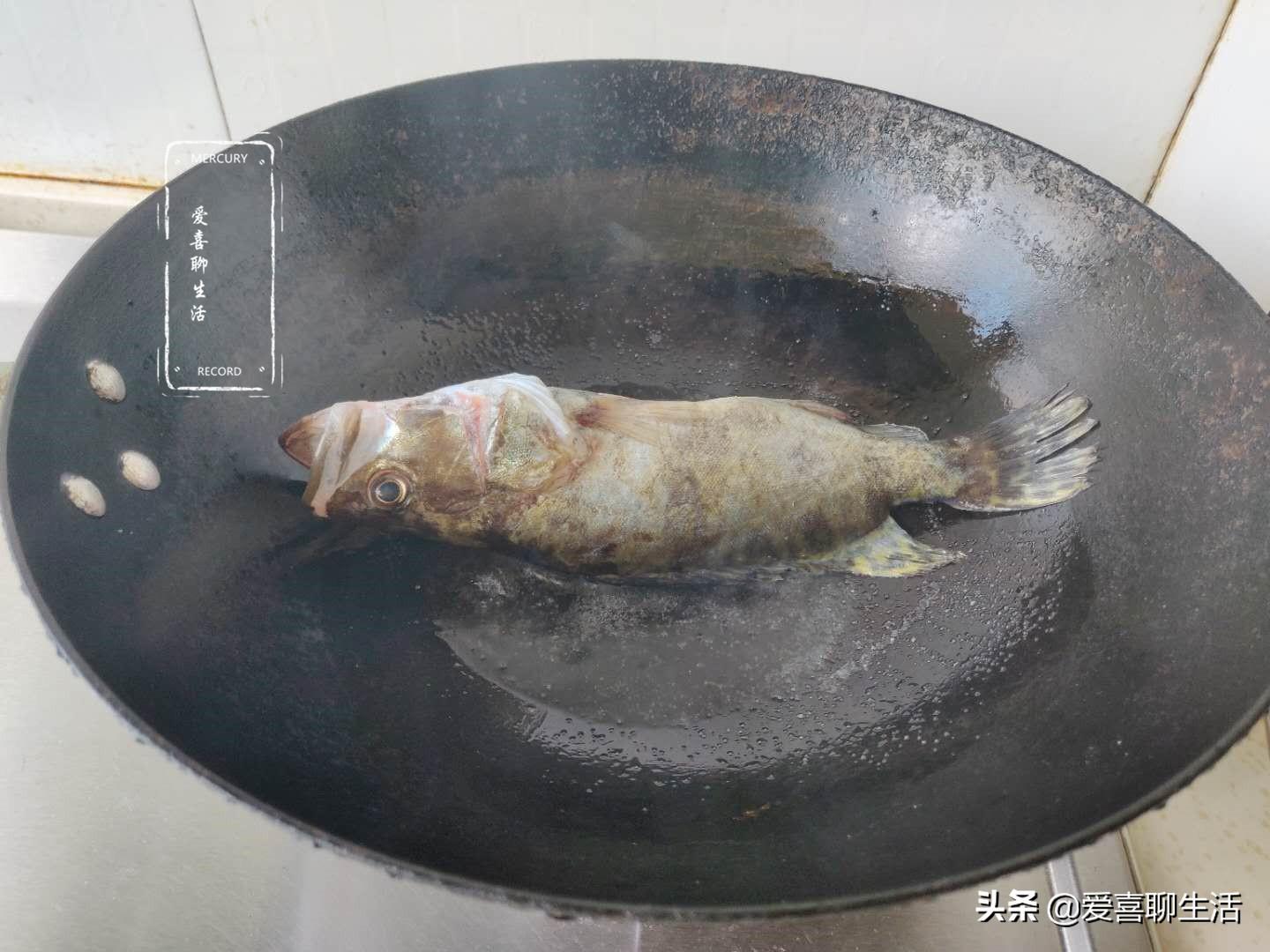 第三步 翻面,鱼放入锅中后不要急着去动它,晃动锅底,轻轻推动鱼身,鱼能动了,再翻面。