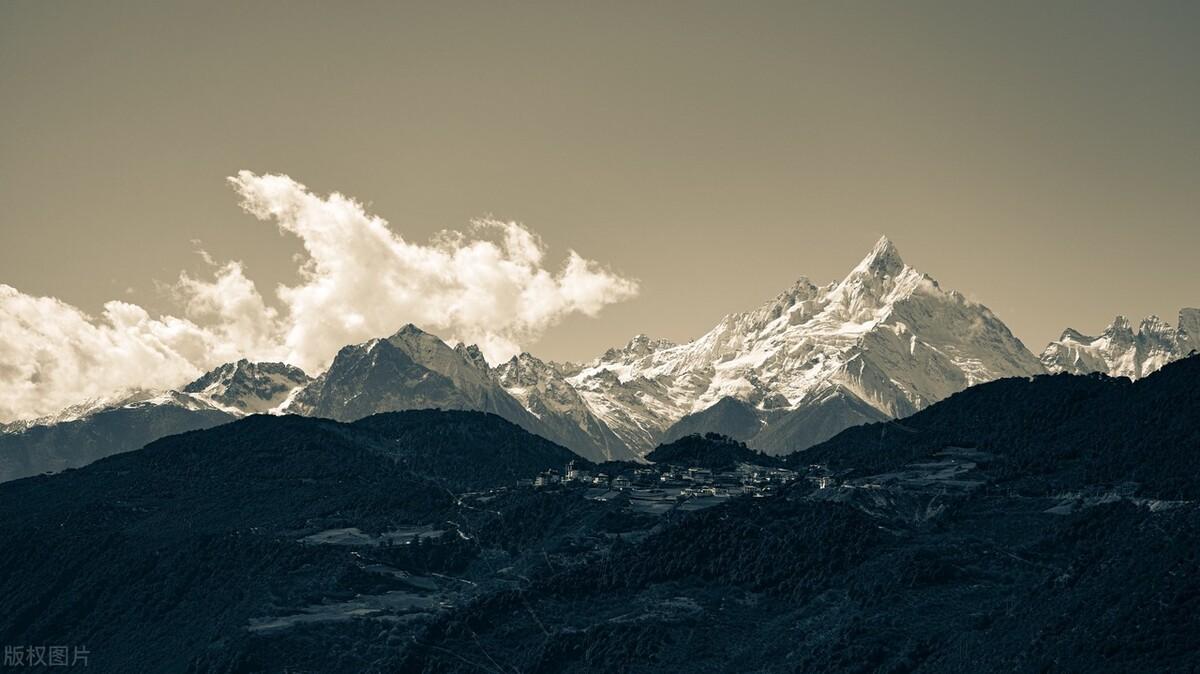 观看梅里雪山有两个位置,一个是飞来寺,再一个就是雾浓顶。雾浓顶是观看梅里雪山全景的最佳位置,这里拍摄梅里雪山可以将远方的飞来寺村和下面的河谷作为前景,可看到雾浓顶村的炊烟和澜沧江的峡谷云雾,视野里的梅里雪山不显突兀,更加大气磅礴。